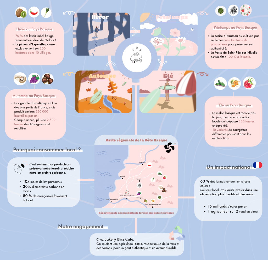 Chez Bakery Bliss Café, chaque ingrédient est sélectionné avec soin pour respecter la saisonnalité et mettre en avant les trésors du terroir basque.